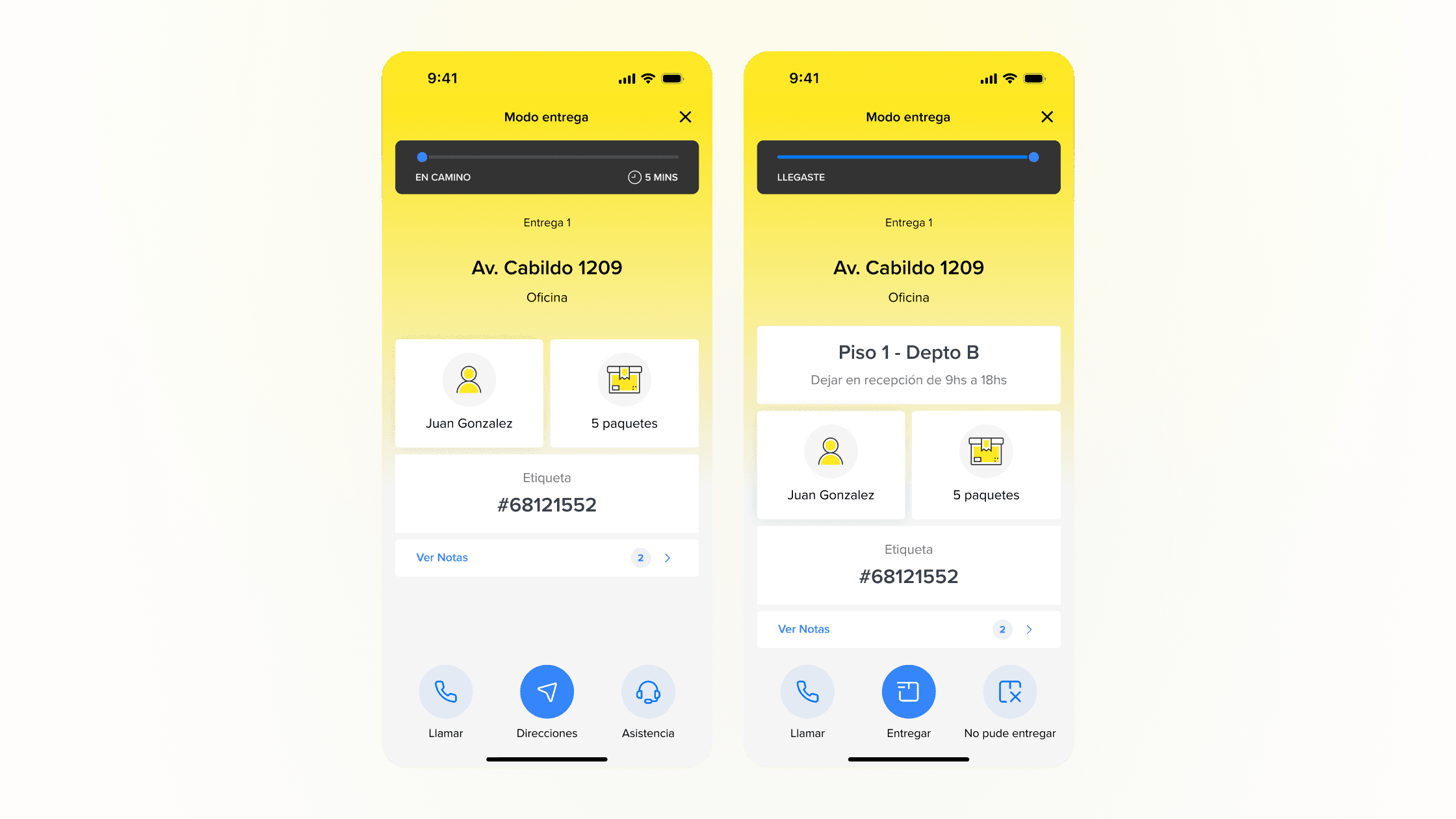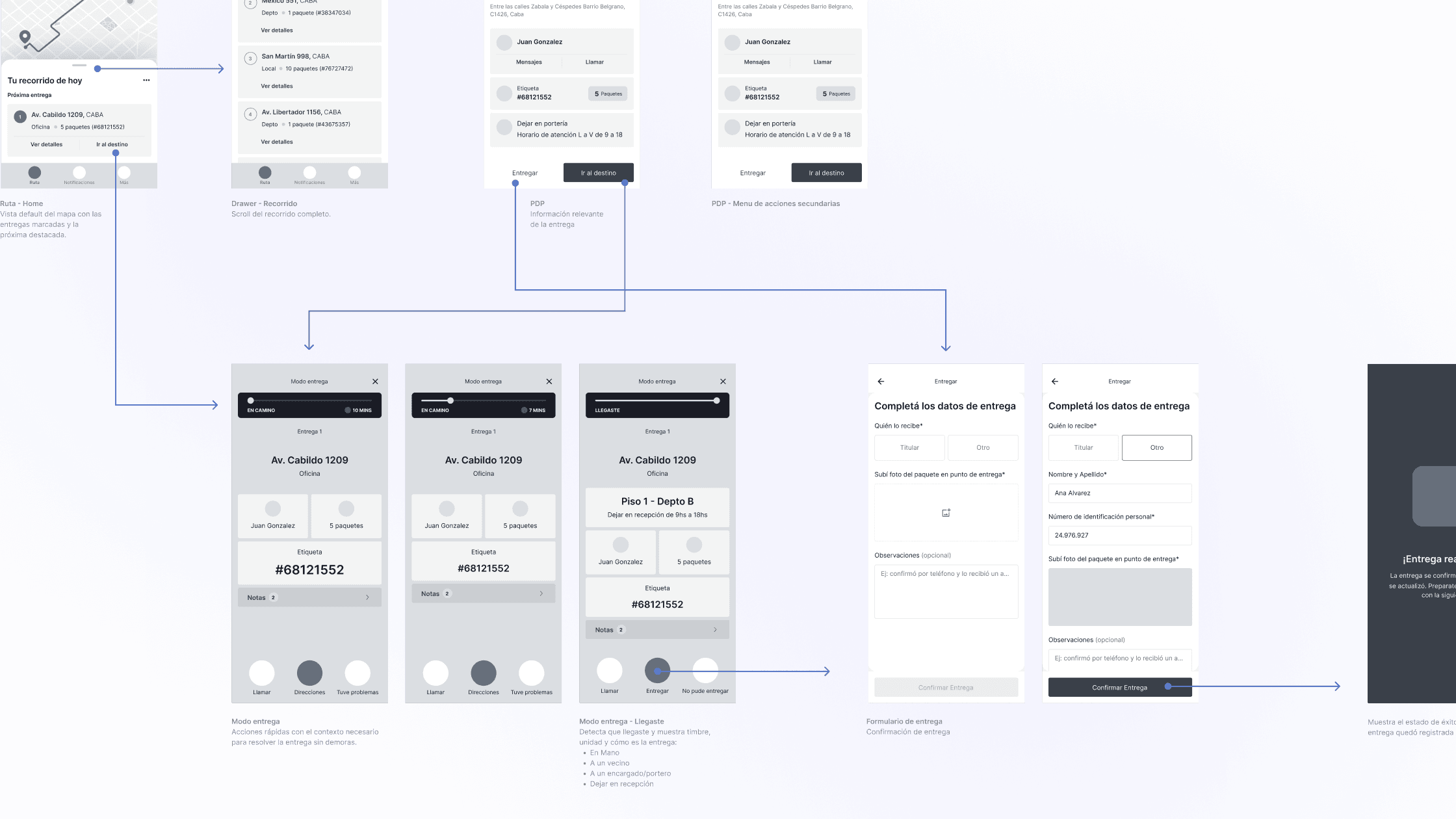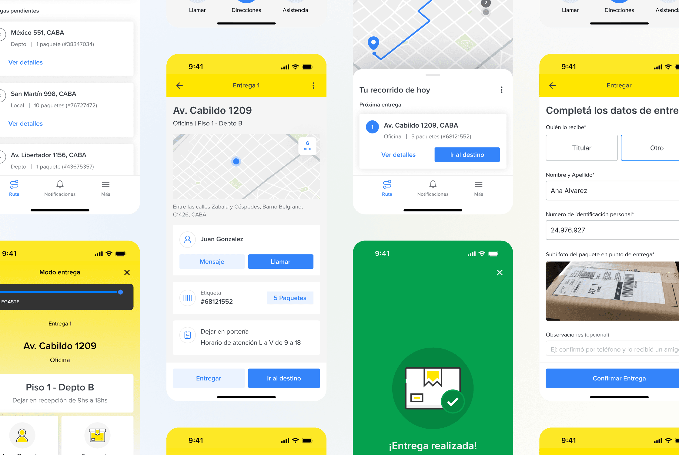 Based on user feedback, a clear hypothesis emerged: Envíos Flex needed to evolve from a static interface into a proactive, context-aware system. The solution focused on adapting the interface to each stage of the delivery journey. By leveraging geolocation, the app anticipates drivers’ needs and surfaces relevant information and actions exactly when they are required. This reduced unnecessary navigation and decision-making, enabling drivers to act faster. As a result, key actions became more intuitive, contextual prompts minimized friction on the road, and the overall experience felt clearer, more supportive, and better aligned with real delivery workflows.