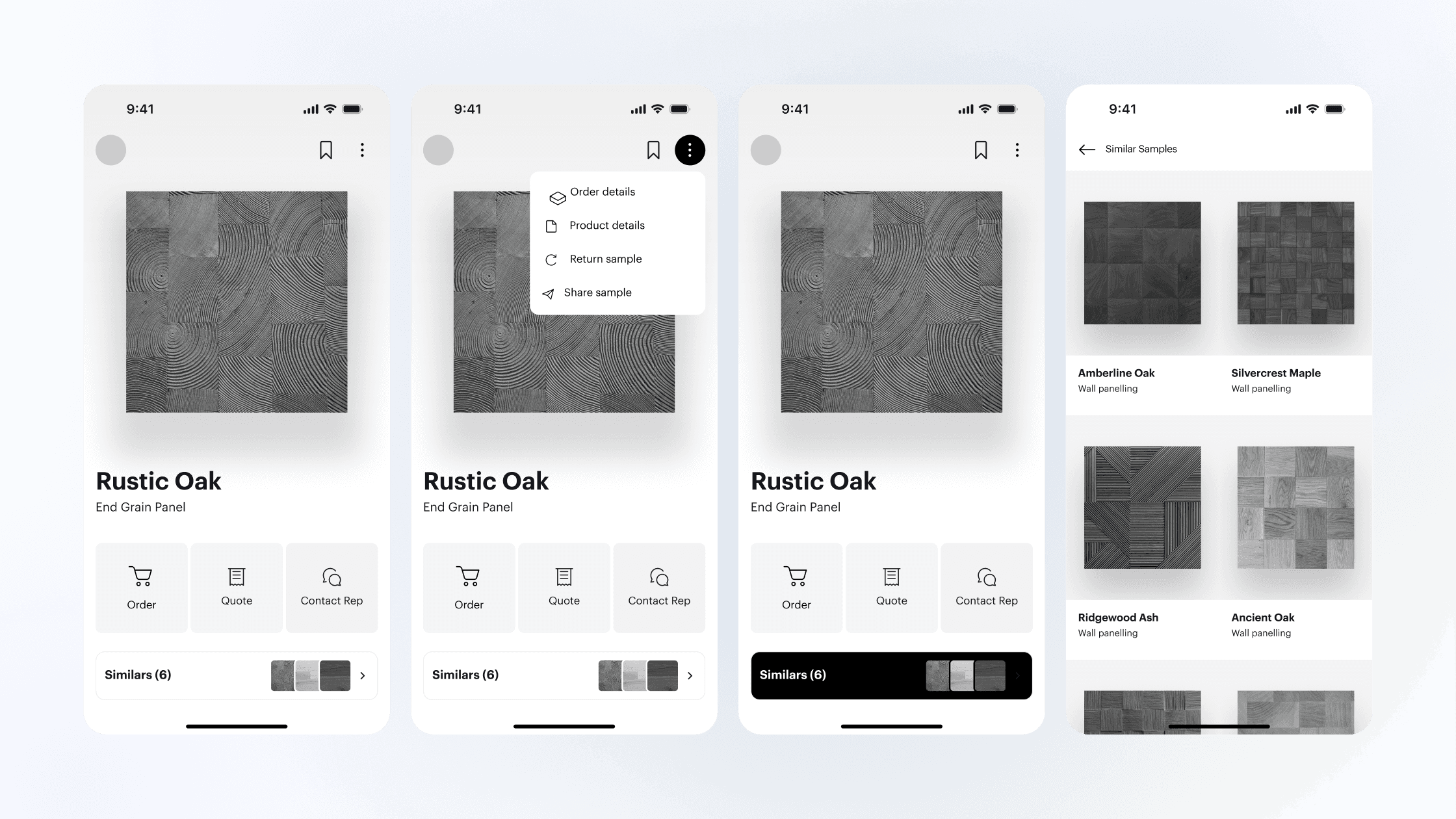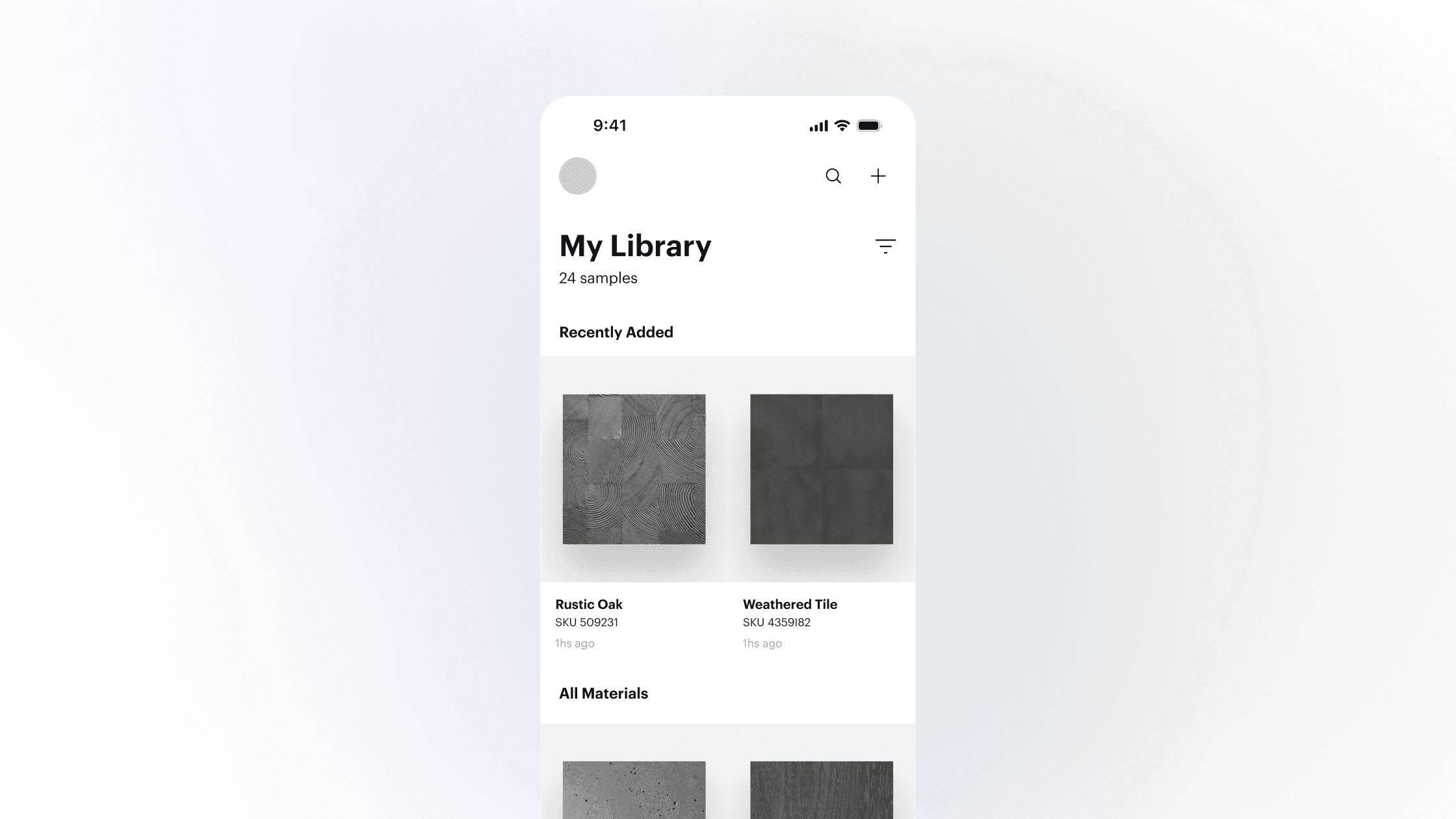 We identified at least four user types, each with different needs and motivations. The focus for this case study will be our primary user persona: architects and designers. The result was a minimalist, streamlined experience with the main actions surfaced upfront. As an added value, we proposed that this tap experience could be integrated into a “Sample Library app,” allowing users to save and access their samples anytime, anywhere. This approach increases the visibility of our client’s brands while turning every interaction into a portable, actionable lead.